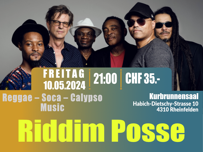 Die Reggae Band Riddim Posse und ihre 6 Musiker aus 5 Nationen spielen feinsten Reggae und Soca. Ihre mitreißende Live Performance verwandelt jeden Auftritt in eine große Karibik-Party.