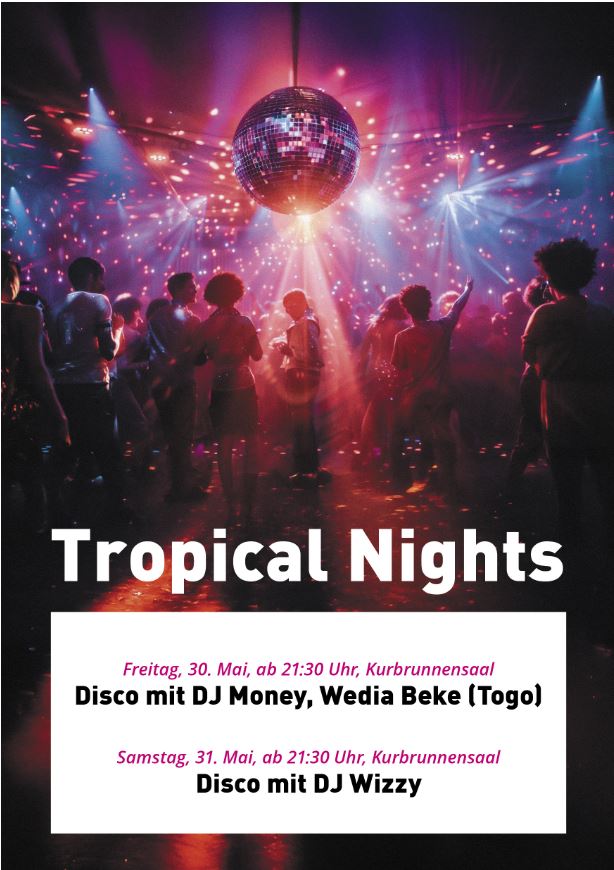Freitag 30. Mai, Disco mit DJ money, Wedia Beke (Togo) ab 21:30